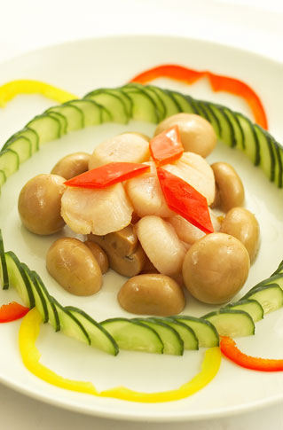 морской гребешок с шампиньонами в устричном соусе