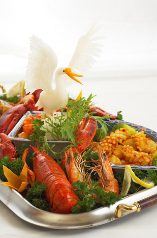 ассорти из морепродуктов в трёх соусах: устричном, томатном и чесночном
