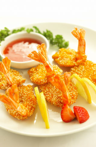 креветки с клубничным соусом