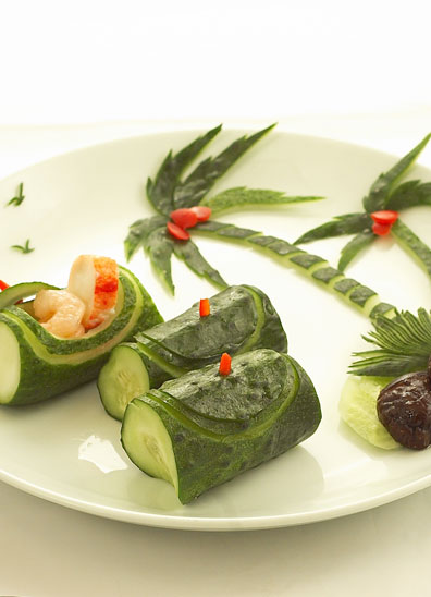 креветки и крабовое мясо в огурце